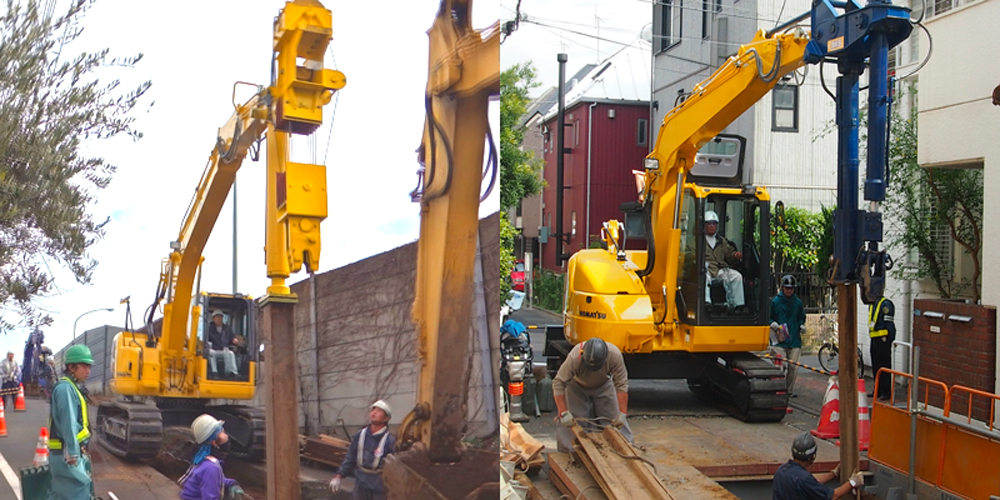■ 油圧式なので周辺地盤を乱さず将来地盤沈下等の心配がありません。低騒音でクレームもなく環境に優しいです。